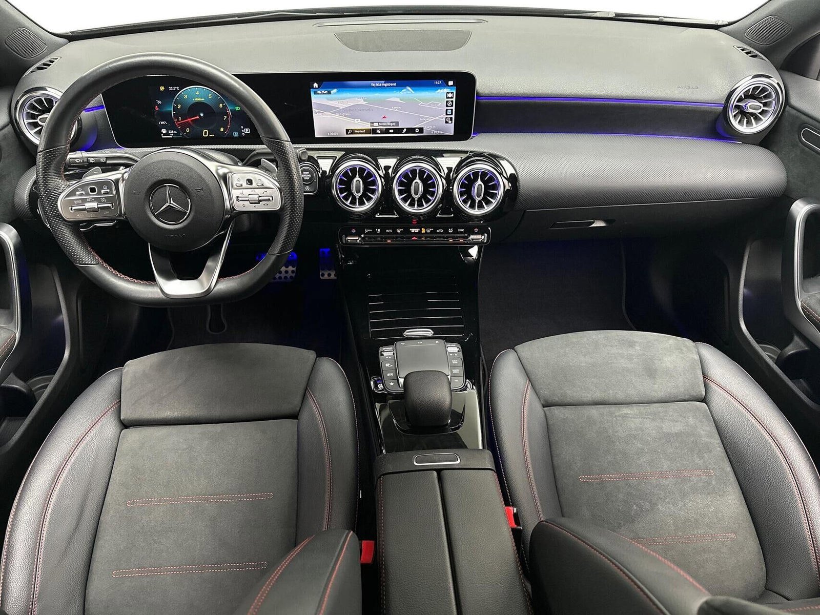 Øvrig beskrivelse: Farve - Nachtschwartz Unilak, Mørk dellæder AMG-line kabine m. røde sygninger, 12V udtag, Aut. nedblændeligt bakspejl, Automatgear, Bluetooth, Digital instrumentering, El-foldbare spejle m. varme, El-håndbremse, Elruder for/bag, Fjernbetjent centrallås, Håndfri telefon, Infocenter, Kørecomputer, Regnsensor, Servo, Udvendig temperaturmåler, USB-C stik, Ambiente belysning, Armlæn, Højdejusterbart førersæde, Højdejusterbart passagersæde, Læderrat, Multijusterbart rat, Splitbagsæde, ABS, Airbag, Alarm, Antispin, Auto hold, Automatisk nødbremsesystem, Automatisk nødopkald, Dæktrykssensor, ESP, Isofix, Selealarm, Startspærre, Træthedsregistrering, Elektrisk parkeringsbremse
